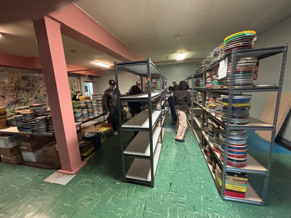 In mid-February 2025, a group of enthusiastic 16mm film fans banded together to pack up over 4000 films from the Nyback archive and move them across Portland. The new home is next to the non-profit NW Documentary in the basement of the Sunnyside Community Center.